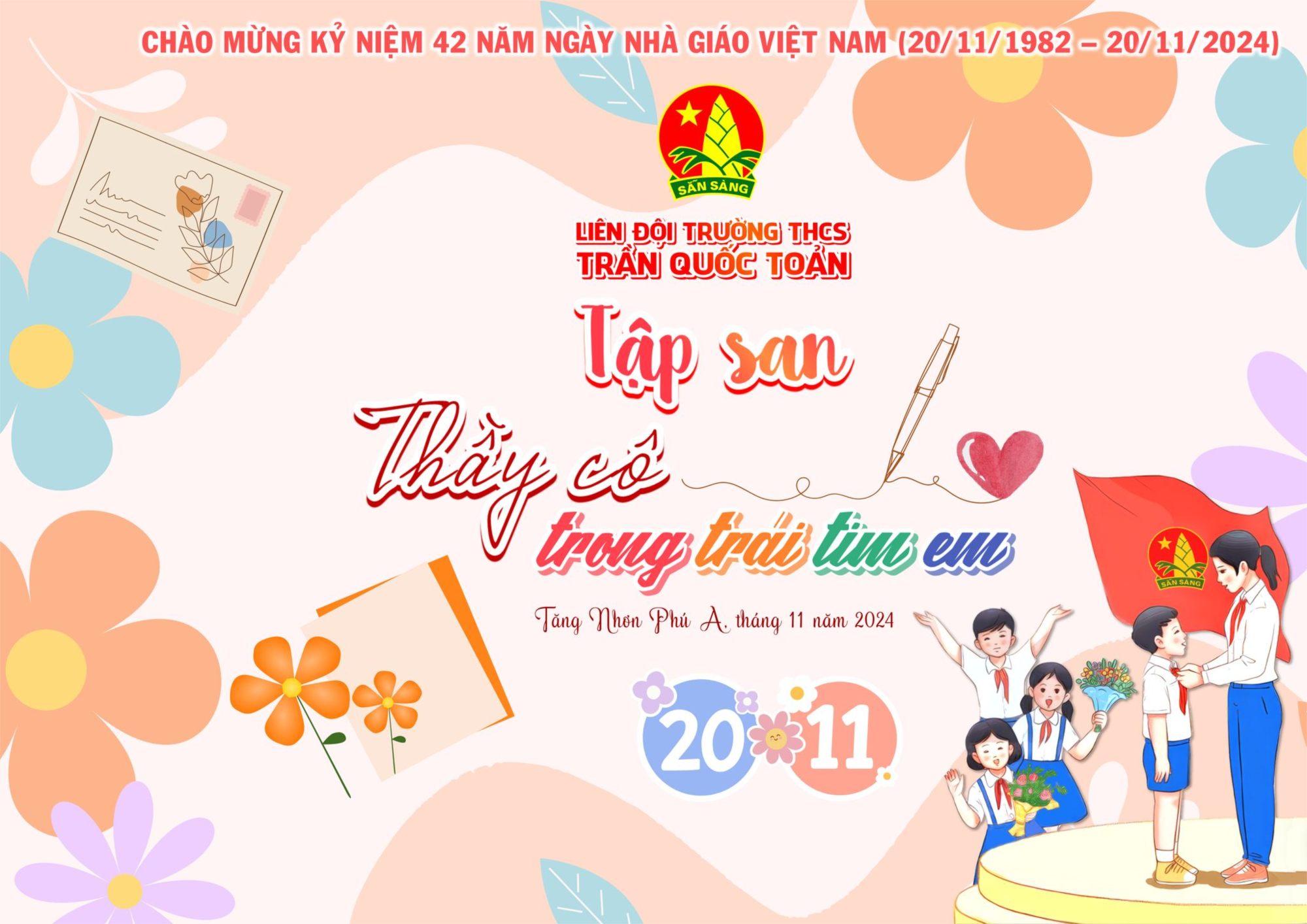 Hướng đến hoạt động tri ân thầy cô nhân kỉ niệm 42 năm Ngày Nhà giáo Việt Nam 20/11 và thực hiện hoạt động theo chủ đề "Chuyện nghề Làng Đội" do Hội đồng Đội thành phố Thủ Đức triển khai, Liên đội THCS Trần Quốc Toản thực hiện tập san "Thầy cô trong trái tim em".