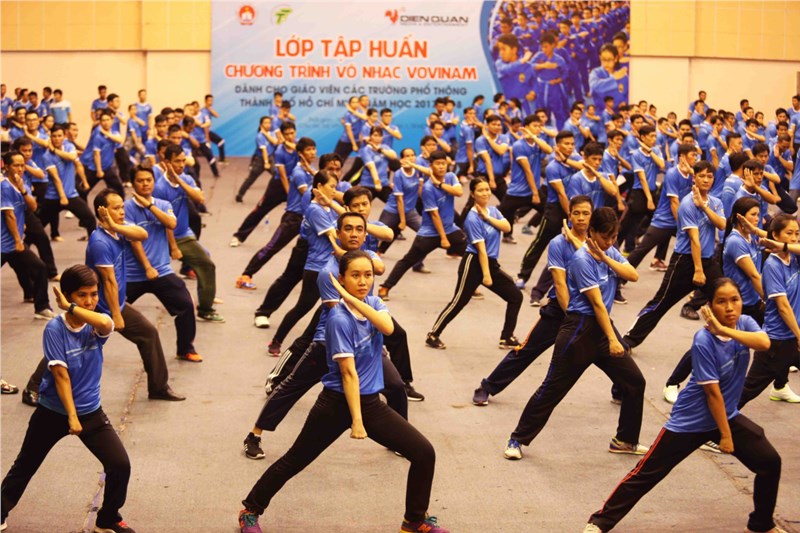 Sau công tác chuẩn bị, Chương trình tập huấn Thể thao cơ bản võ nhạc vovinam do Sở Giáo dục & Đào tạo TP.HCM phối hợp với Sở Văn hoá & Thể thao TP.HCM và Hội Việt Võ Đạo TP.HCM cùng sự đồng hành của Công ty truyền thông và giải trí Điền Quân sẽ được tổ chức trong 02 ngày 16/11 và 17/11/2017 tại Câu lạc bộ Văn hóa – TDTT Nguyễn Du, Quận 1. Chương trình quy tụ hơn 300 giáo viên từ 120 trường phổ thông trong toàn thành phố ở 03 cấp học: Tiểu học, THCS và THPT. Các học viên sẽ được trang bị áo thun đồng phục tập huấn, tài liệu - hình ảnh bài tập. Bên cạnh đó, gần 120 HLV của 24 quận huyện trên địa bàn TP.HCM, các HLV của các tỉnh Long An, Bình Dương, Trà Vinh, Vĩnh Long, Đồng Nai, Tiền Giang, Kiên Giang cũng tham dự trong chương trình tập huấn này. Phó Giám đốc Sở Văn hóa - Thể thao TP.HCM Mai Bá Hùng cho biết: "Chúng ta sẽ được sự hỗ trợ nghiên cứu, hướng dẫn từ các đối tác nước ngoài trong việc kết hợp đưa âm nhạc vào các động tác thể dục và võ thuật. Điều này tạo ra sự gắn kết và mang tính hiện đại để thu hút người tập. Ngoài ra, âm nhạc và võ thuật đều có chung mục đích giáo dục, hướng thiện. Do vậy, kết hợp Vovinam cùng nhạc mang tính dân tộc vào học đường sẽ giúp học sinh có thêm tinh thần yêu nước và hiểu lịch sử, truyền thống dân tộc hơn".